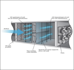 เทคโนโลยี Ultraviolet Germicidal Irradiation (UVGI) สามารถติดตั้งรวมเข้ากับระบบท่อลมของ HVAC ได้ เพื่อปล่อยรังสีอัลตราไวโอเลตไปทำลายจุลินทรีย์ในอากาศ เช่น เชื้อไวรัส แบคทีเรีย หรือเชื้อรา ทำให้อากาศภายในอาคารมีความสะอาดและปลอดภัยยิ่งขึ้น